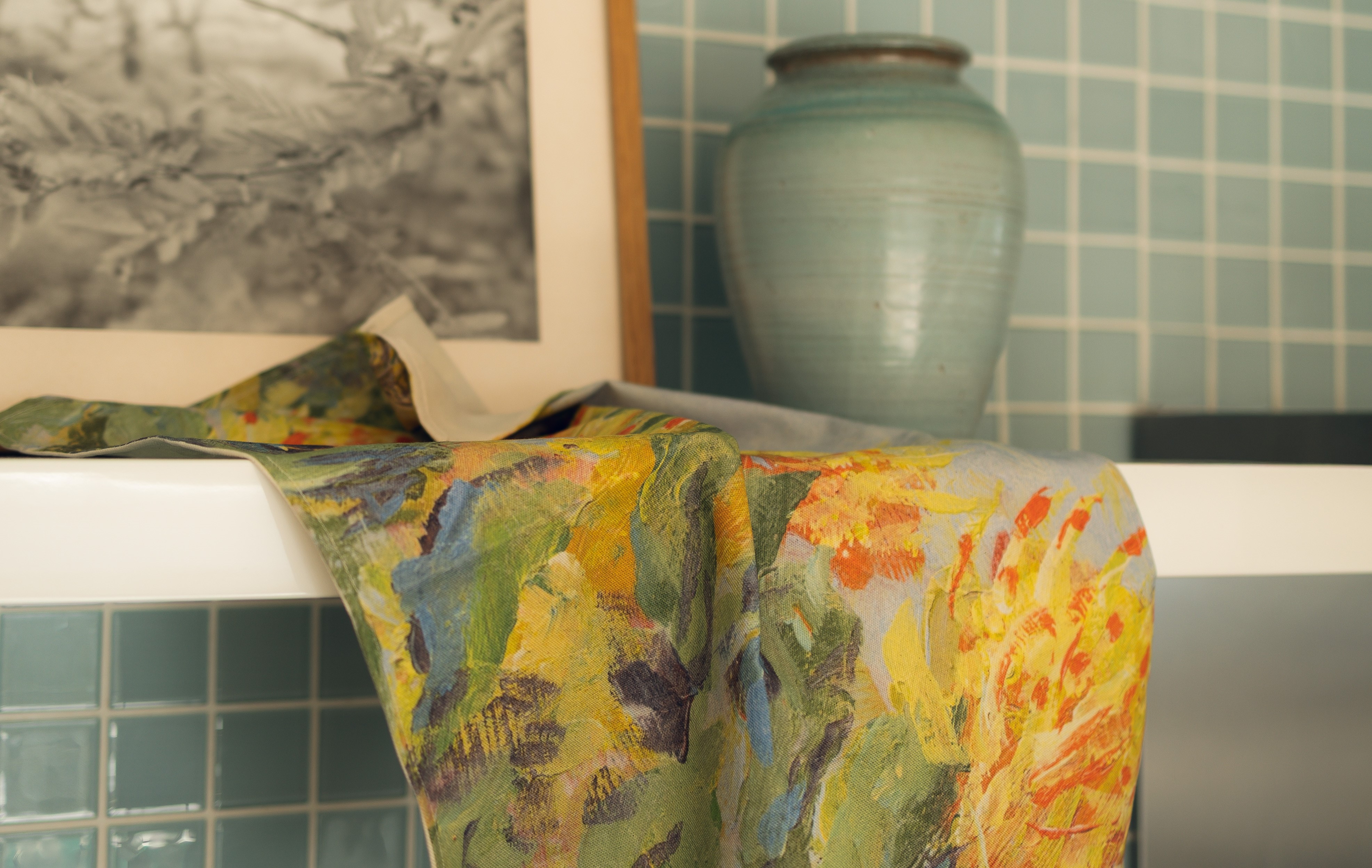 The collection includes tea towels, placemats, canvas shopping totes and other thoughtfully produced home accessories — each featuring artwork drawn from original paintings.