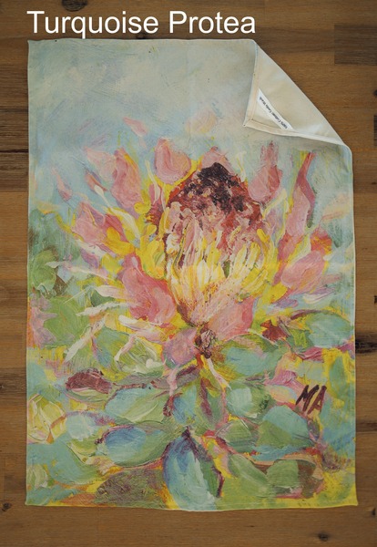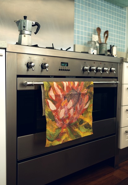 These protea tea towels translate that spirit into everyday kitchen linen. Each design is printed from an original artwork by Mary-Anne Flanagan, capturing the painterly energy, layered colour, and slightly unruly beauty of the protea in bloom.